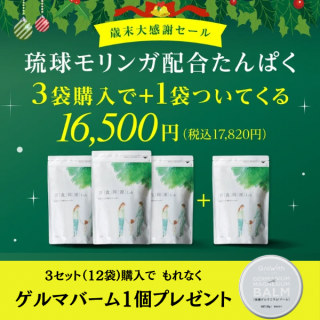 年末大感謝祭『琉球モリンガたんぱく3袋購入+1袋ついてくる』さらに…3セット12袋購入でもれなく『ゲルマバーム』をプレゼント3セット(12袋)ご購入者様にはもれなく『ゲルマバーム』を1個プレゼントさせていただきます